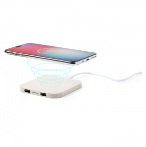 Carregador sem fio na linha da natureza. Casca em palha de trigo, para incentivar o uso de matérias -primas naturais e reduzir as emissões contaminantes. 2. 100 mA, saída USB dupla para carregamento simultâneo de até 3 dispositivos (1 carga sem fio e 2 dispositivos via cabo). Com base não deslizante e compatível com dispositivos equipados com tecnologia de carregamento sem fio. Apresentado em uma caixa de design atraente e ecológica. Sem fios 10W. 2 Saídas USB Composition : Palha de Trigo/ ABS.NATURAL;